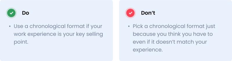 The old standard, the reverse chronological format has probably been around nearly as long as resumes. And it’s not without good reason. A chronological format is still the best way to showcase employment history, especially in traditional industries where climbing the corporate ladder is the most commonly accepted route. All the best resume templates will focus on this logical approach.